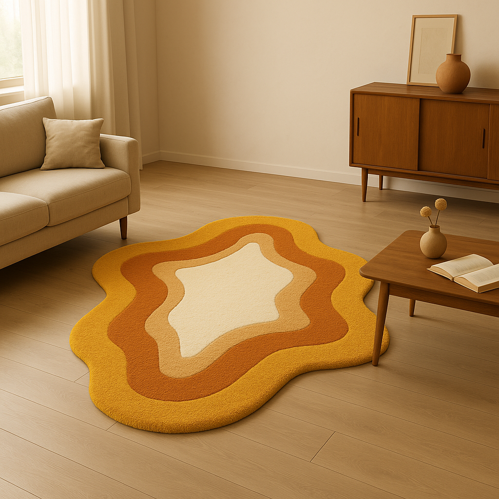Modern 3D Irregular Hand-Tufted Rug – Retro Wave Design, Eco-Friendly Soft Carpet for Living Room & Bedroom