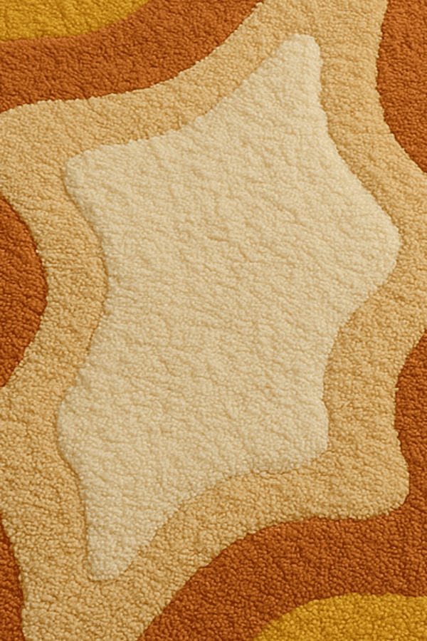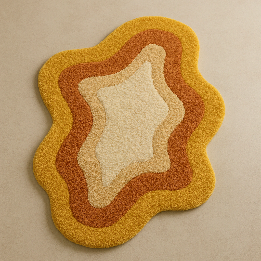Inspired by retro wave patterns and earthy tones, this rug adds a unique artistic touch to any space. Crafted with eco-friendly, durable, and soft yarns, it ensures comfort underfoot and timeless beauty for your living room, bedroom, or studio.